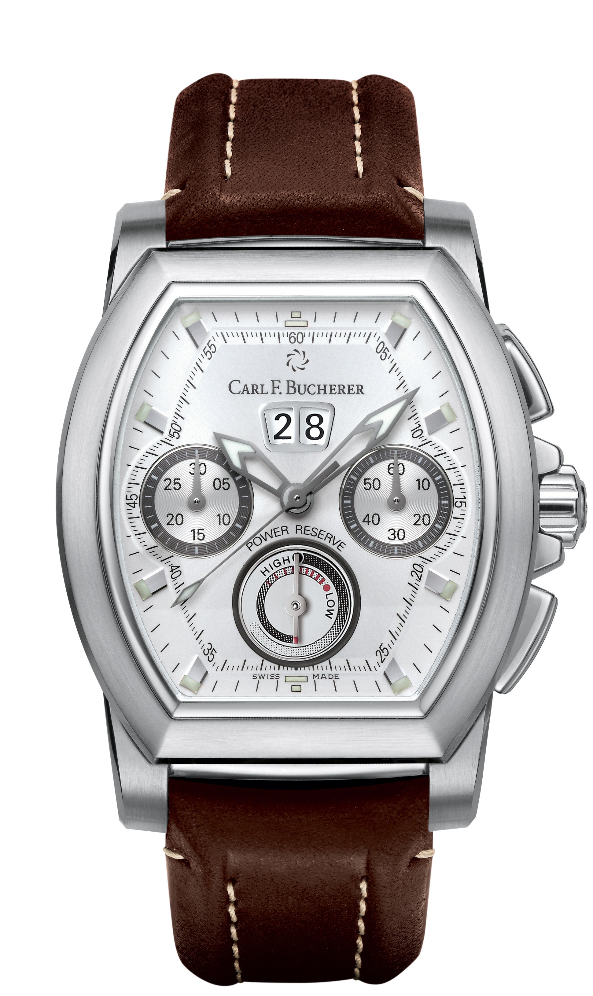 Functions: Chronograph: hour and minute counters, Bidirectional power reserve, Big date, Hour, Minute, Small seconds