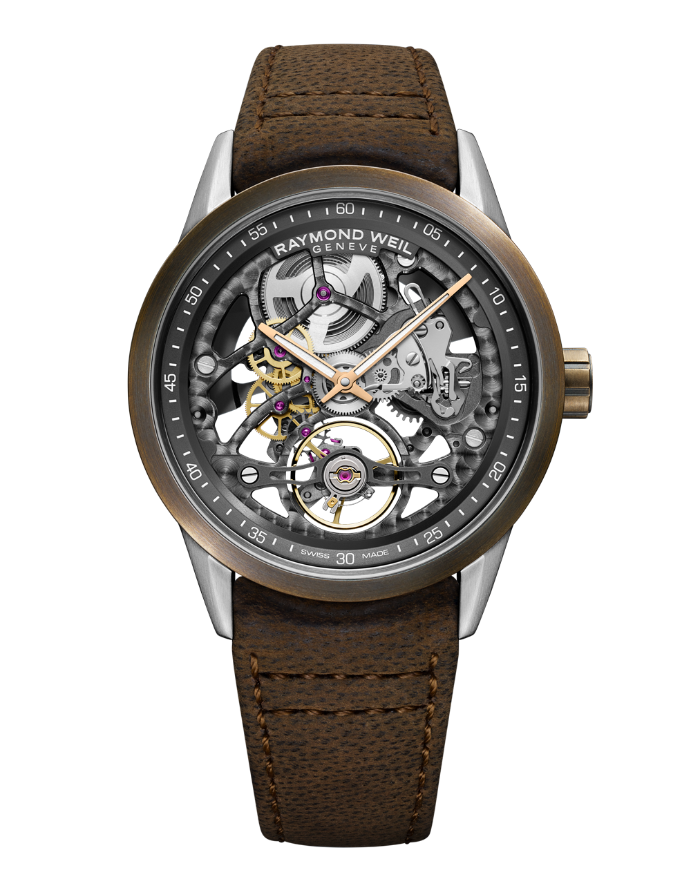 Freelancer Men's Skeleton RW1212 Bronze Leather Strap Watch, 42mm