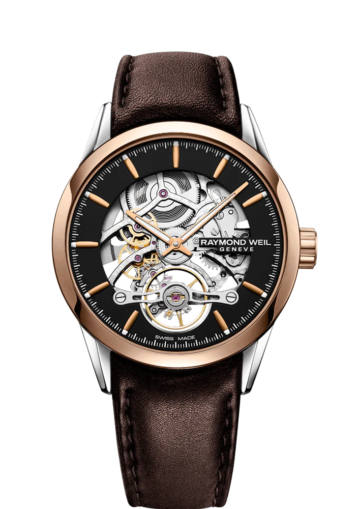 Raymond Weil Freelancer 42mm Automatic Skeleton Two Tone On Strap Men's Watch 2785-SC5-20001
