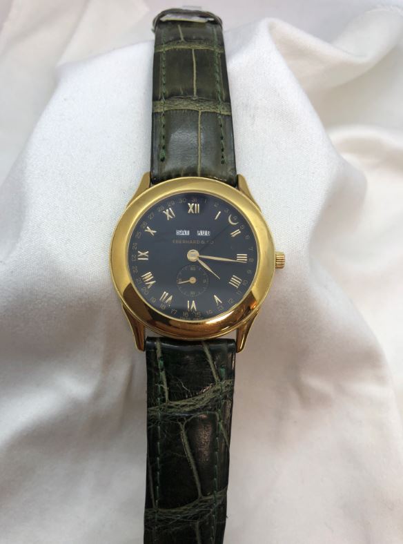 Eberhard Compact 18kt Quartz 18kt Gold Black Dial On Strap Men's Watch 30034