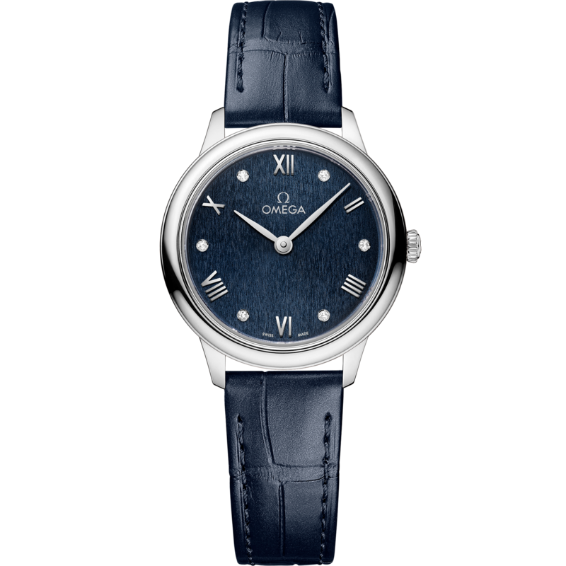 27.5 mm, steel on leather strap