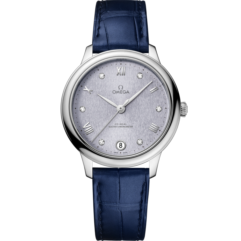 34 mm, steel on leather strap