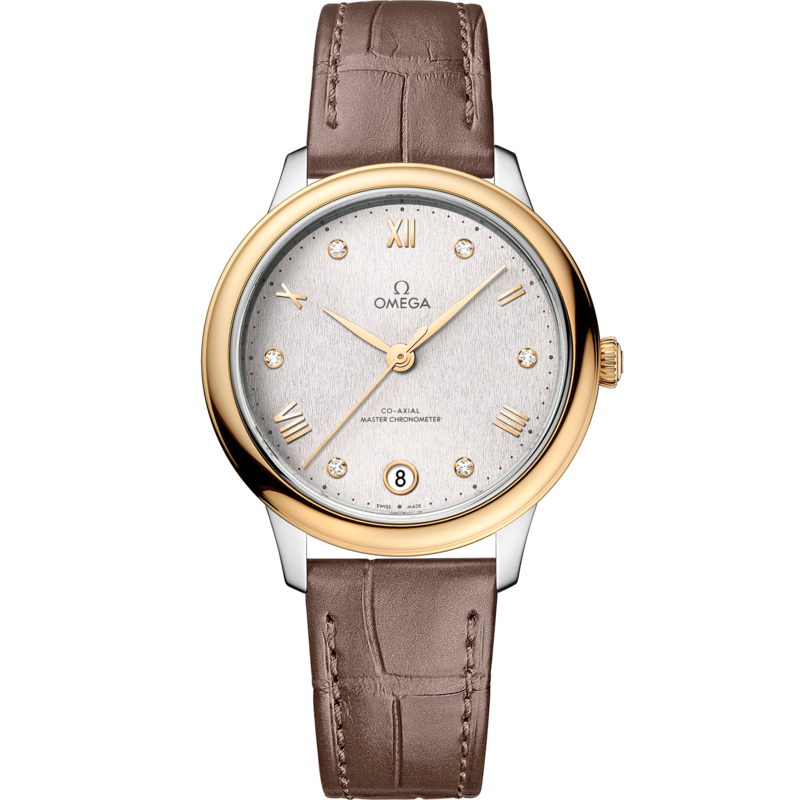 34 mm, steel ? yellow gold on leather strap