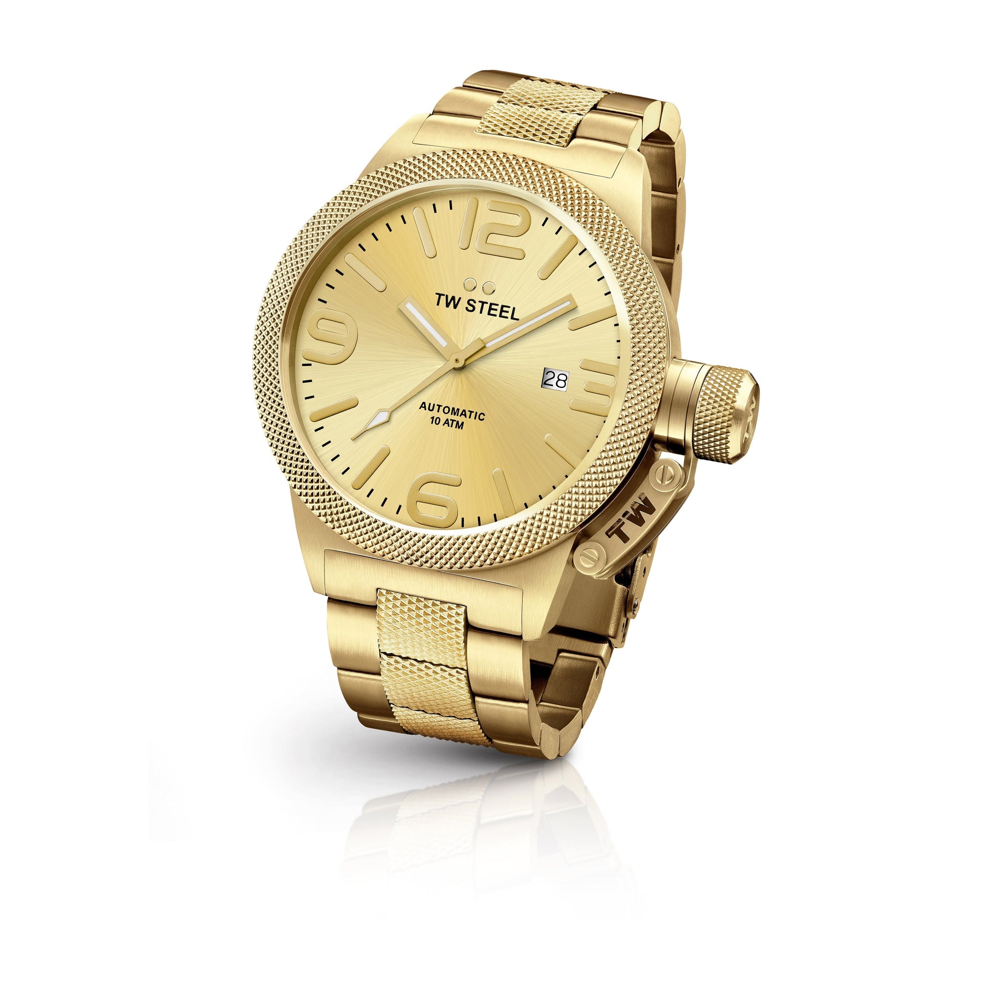 TW Steel Canteen 50mm Steel PVD Yellow Gold Plated Automatic Sunray Gold On Bracelet CB106