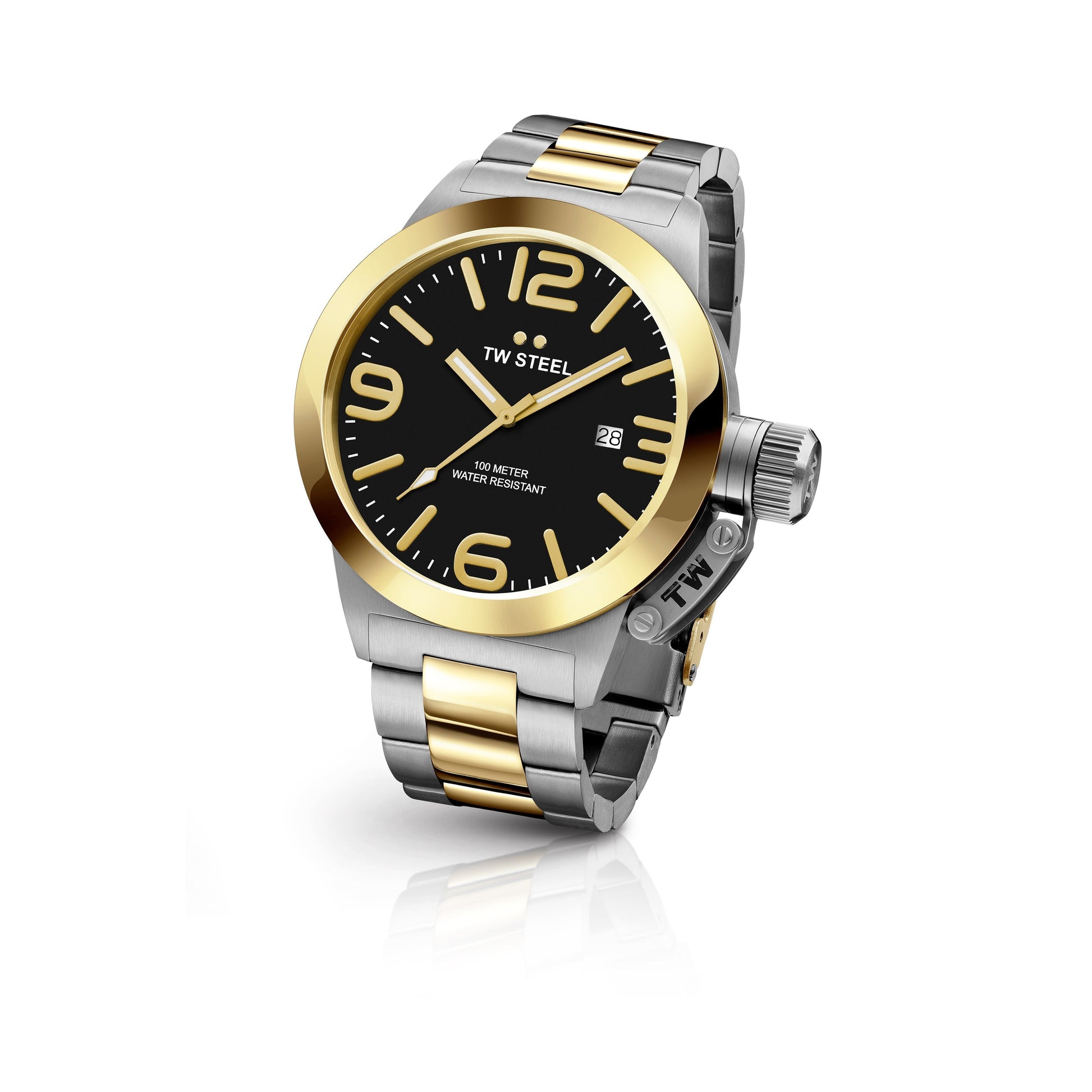 TW Steel Canteen 45mm Steel PVD Yellow Gold Plated Black On Bracelet CB41