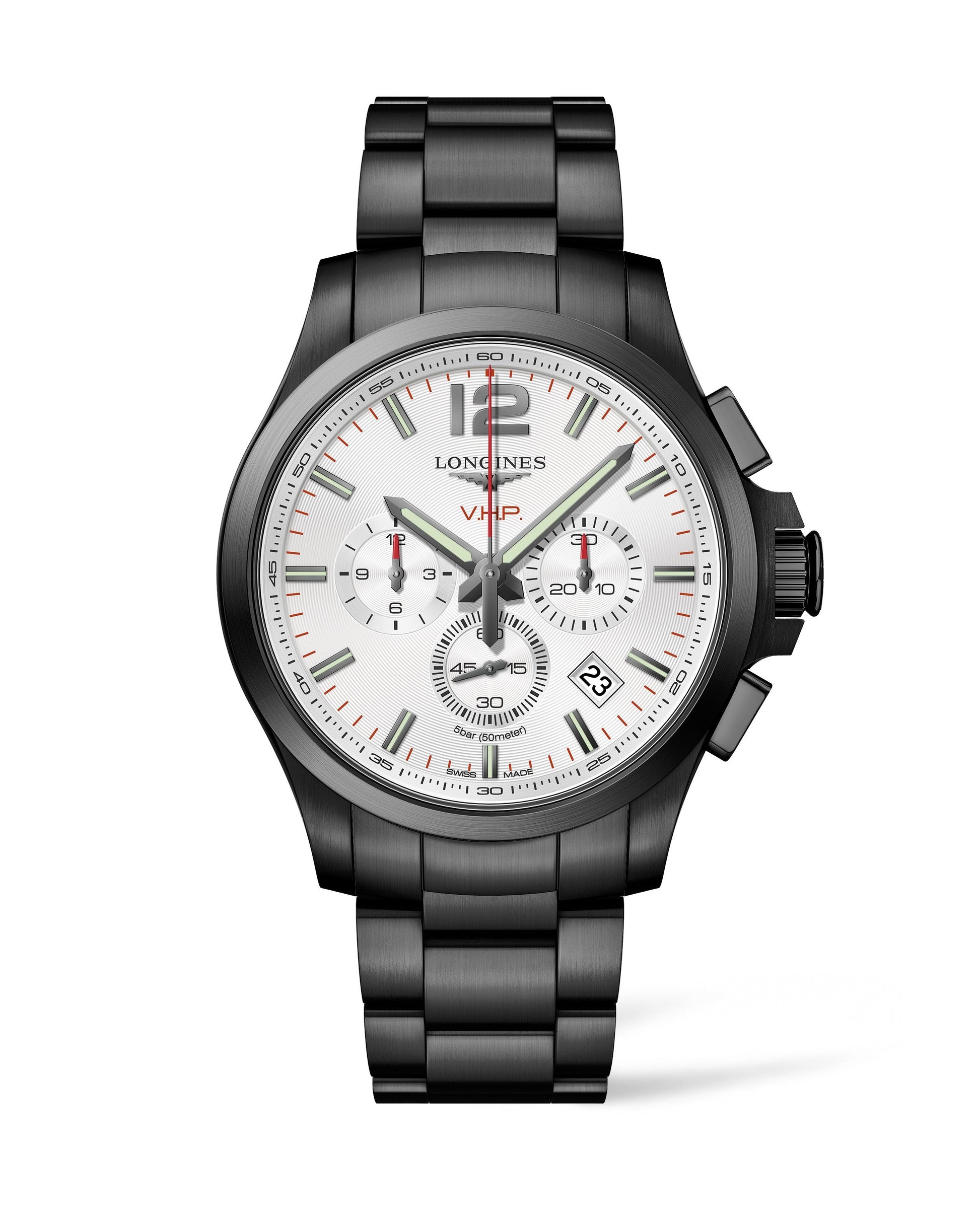 Longines Conquest V.H.P. 44mm Quartz Chronograph Black PVD On Bracelet Men's Watch L3.727.2.76.6