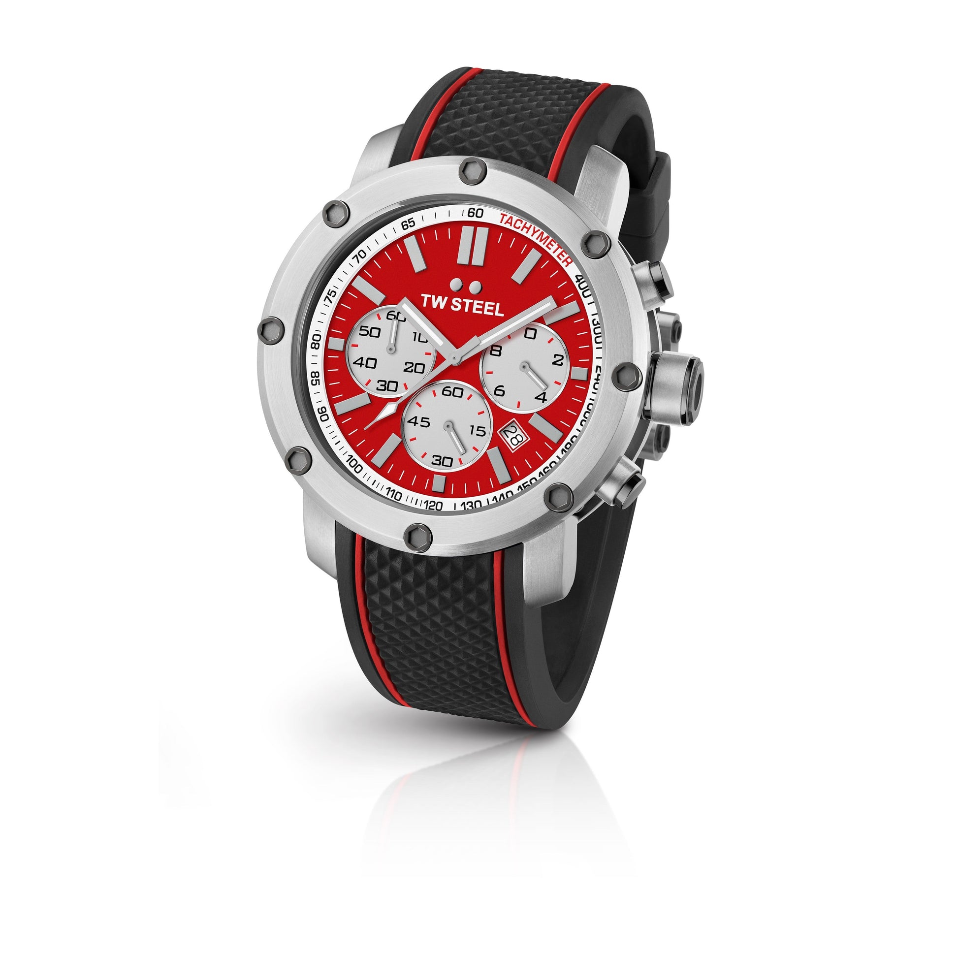 TW Steel Tech 48mm Steel Chronograph Red On Silicon Strap TS1
