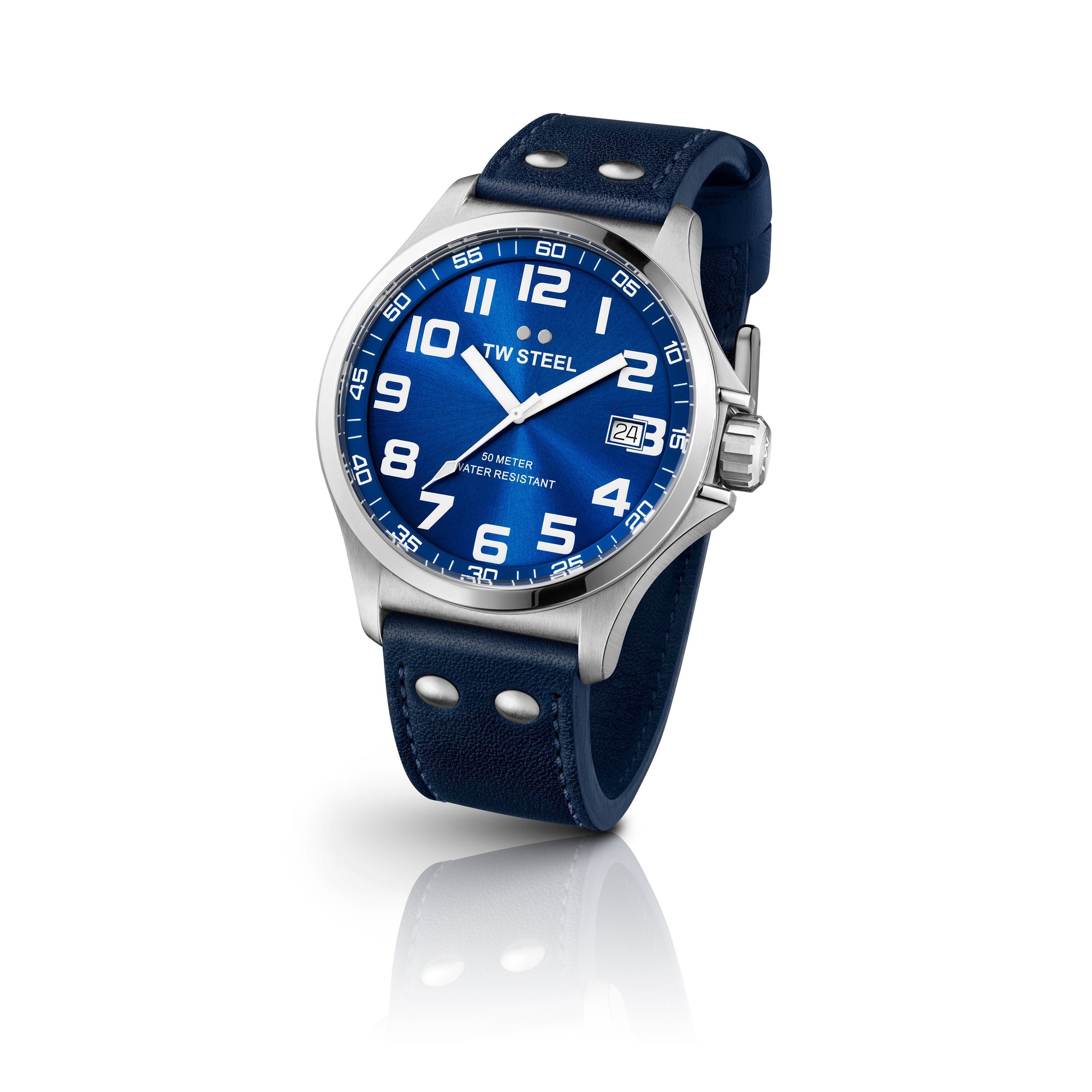 TW Steel Pilot 45mm Steel Blue On Leather Strap TW400
