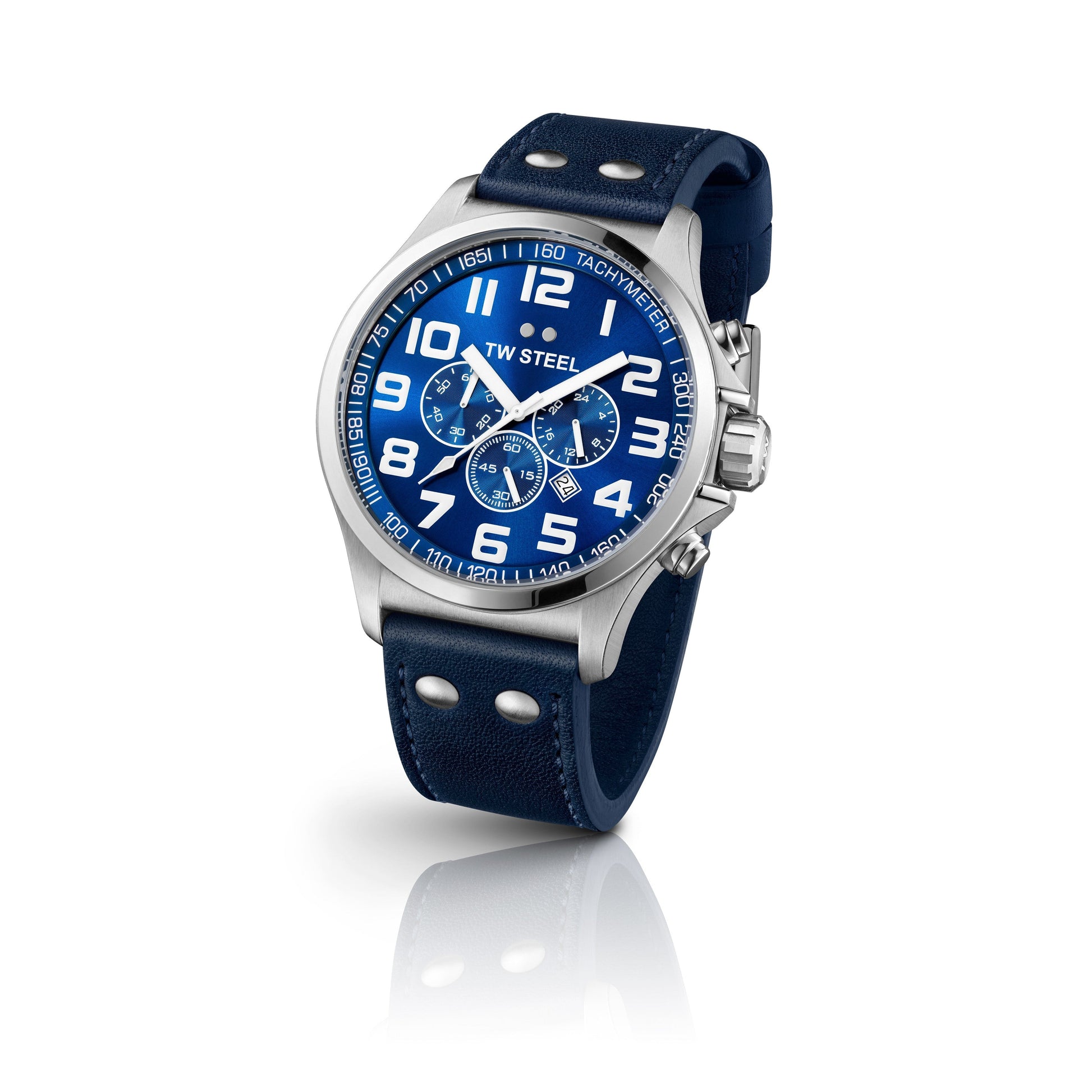 TW Steel Pilot 45mm Steel Chronograph Blue On Leather Strap TW402